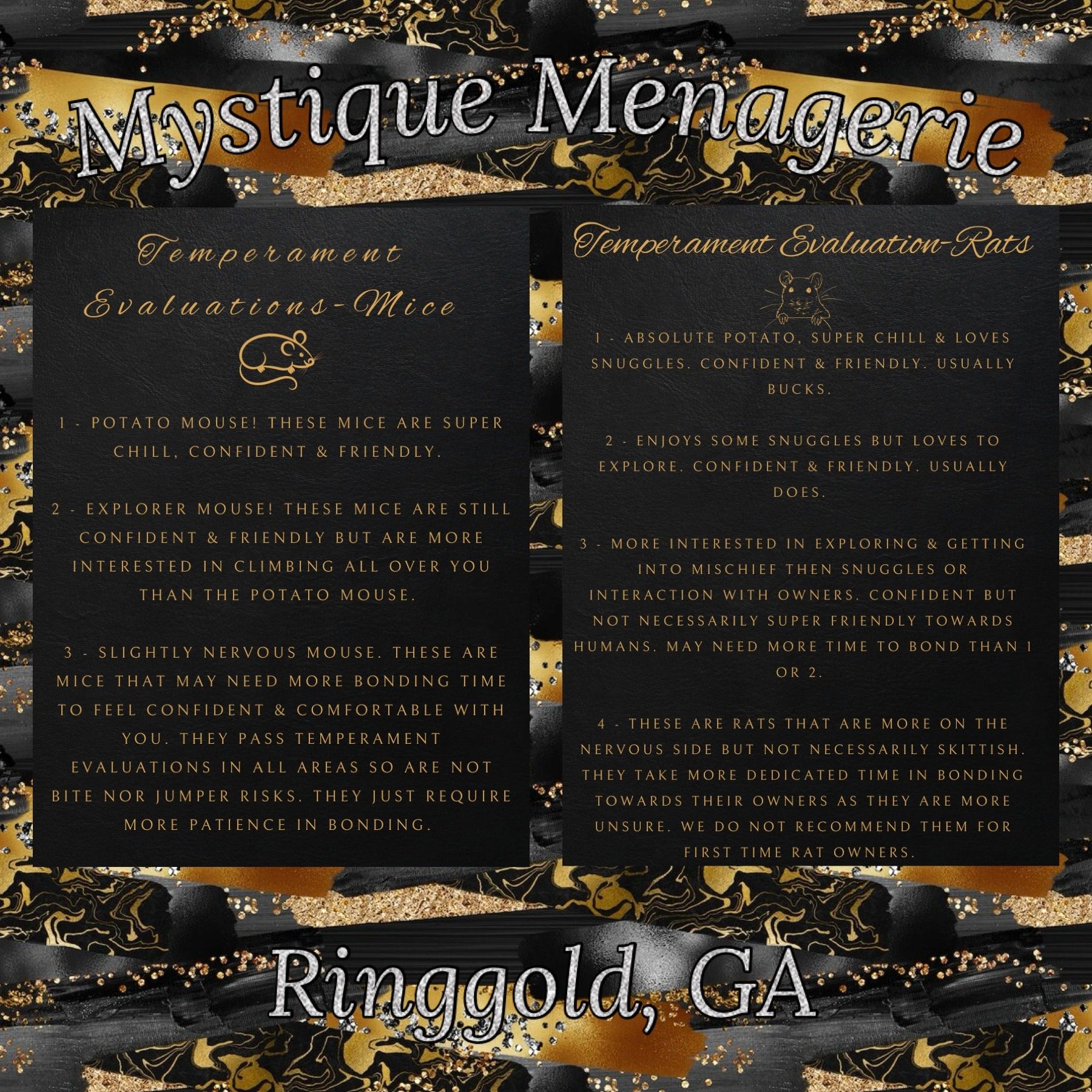 Mystique Menagerie is a member of the Fancy Mouse Breeders Association (FMBA) and American Fancy Rat & Mouse Association (AFRMA)